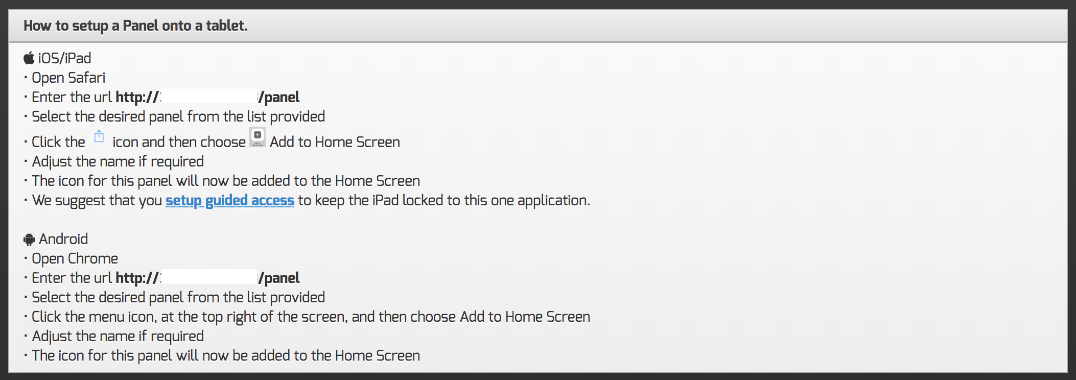 When you are ready to setup on a tablet, just follow the instructions at the bottom of the Panels tab,