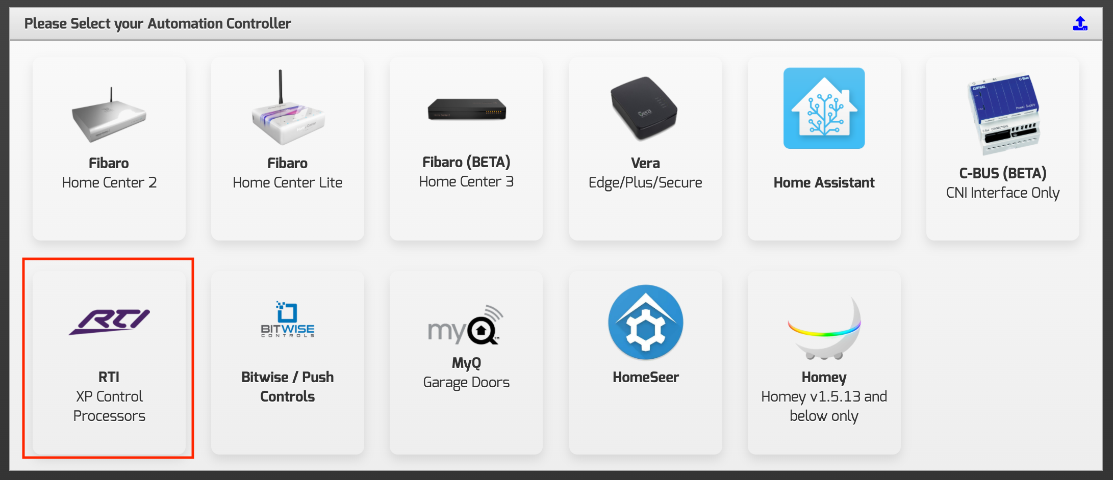 You will be prompted to select the RTI controller you wish to use (multiple controller's can be used with the automationbridge, these can be added via the Settings page)