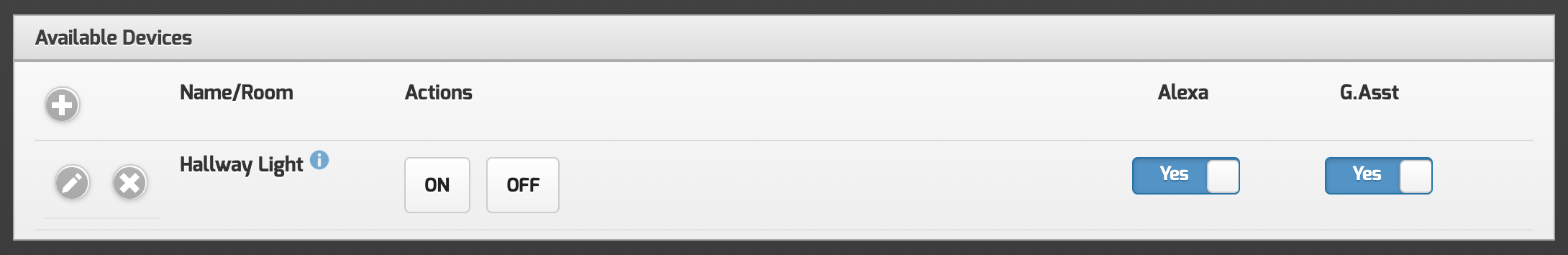 Then click the Add button, you will then be returned to the Home page, and will be able to enable this device for your voice platform. You will also be able to edit the device, if you need to change its name or action URL's.