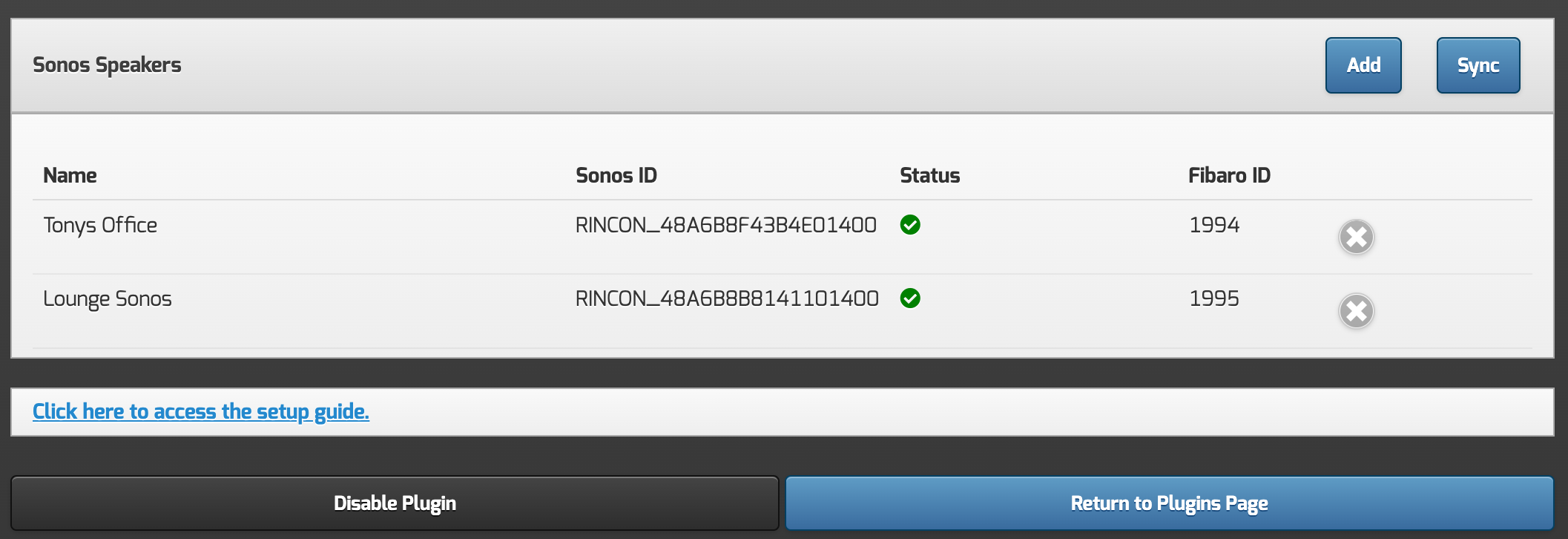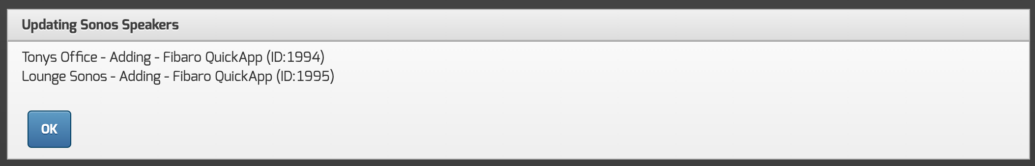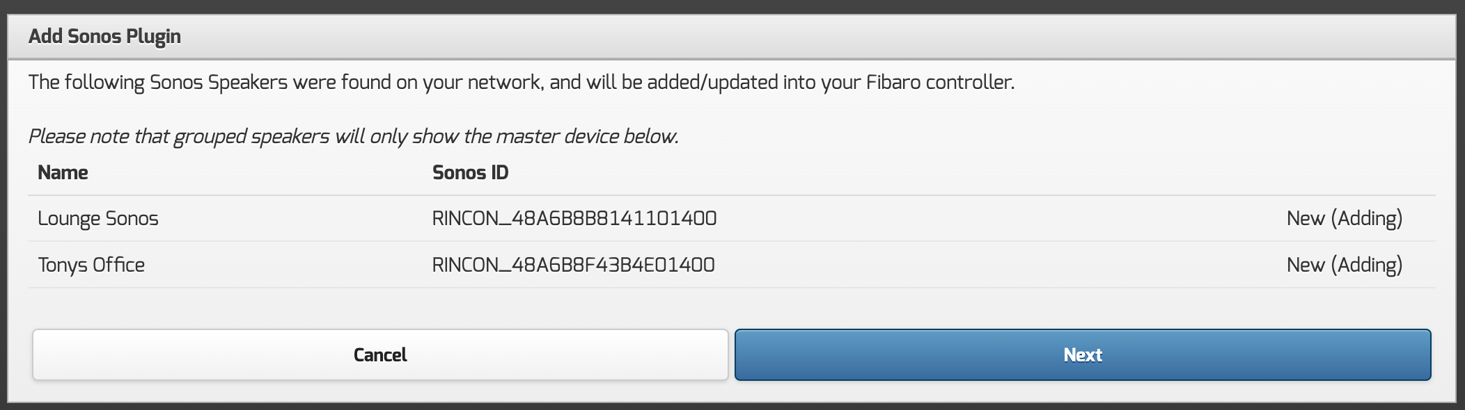 Step 5 - The discovered speaker(s) will now be added to the system, and the Fibaro Virtual Device created.
