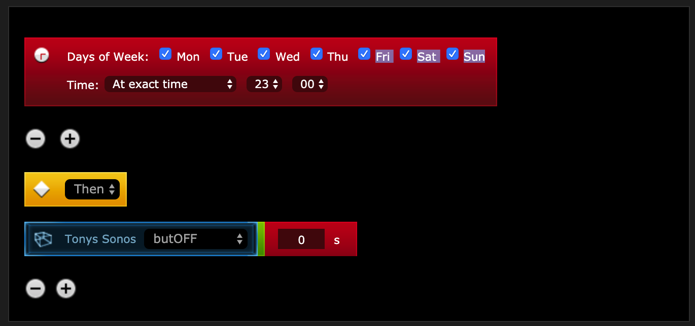 If you wish to add in the Sonos functions to a scene, here is an example using the Block editor.