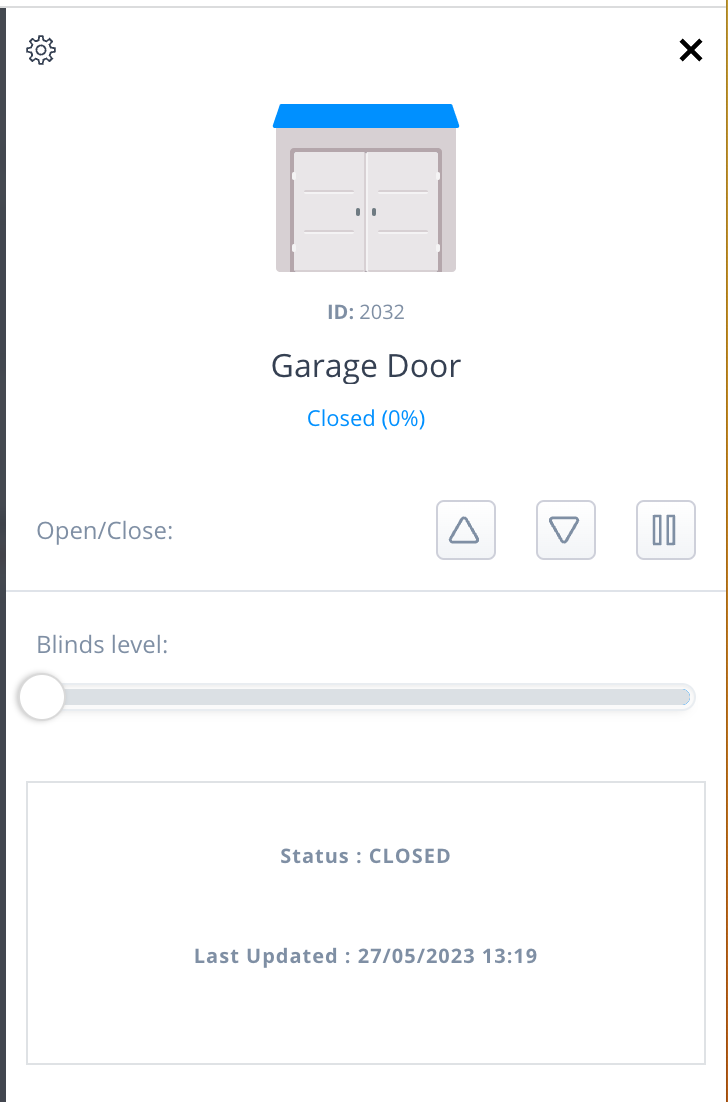 Note: the QA will show Blinds Level control, this is non-functional, as there is no QA device type of Garage Door, so a Roller Blinds QA is used and re-badged/icon as a Garage Door