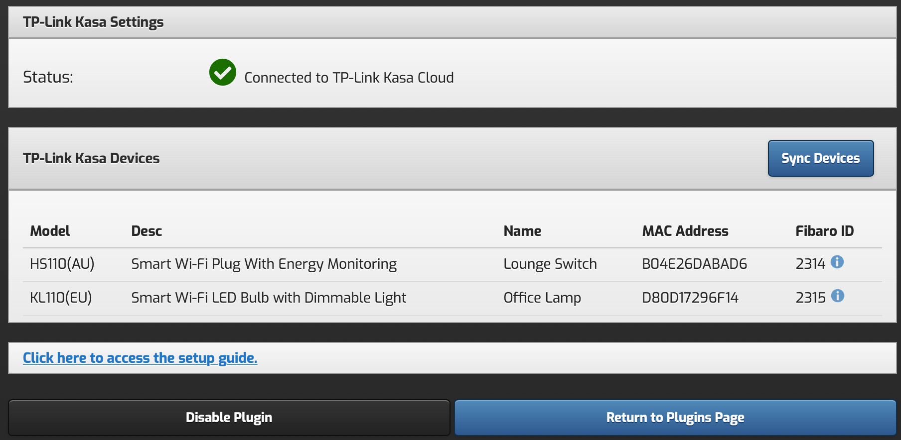 From here you can perform a Sync, this will pickup and new devices added to your Kasa cloud account, along with processing any device name changes.