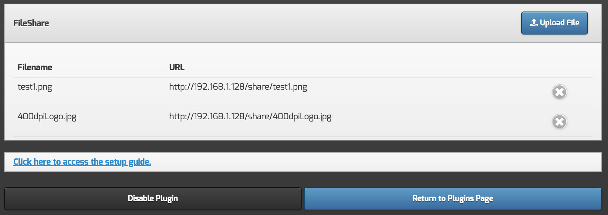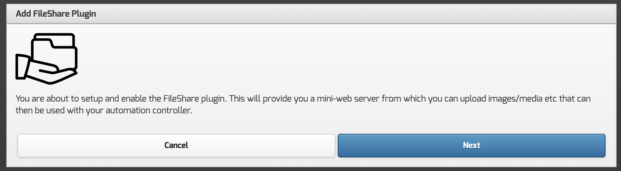 Step 1 - Click on the Add button under the FileShare icon on the plugins page.