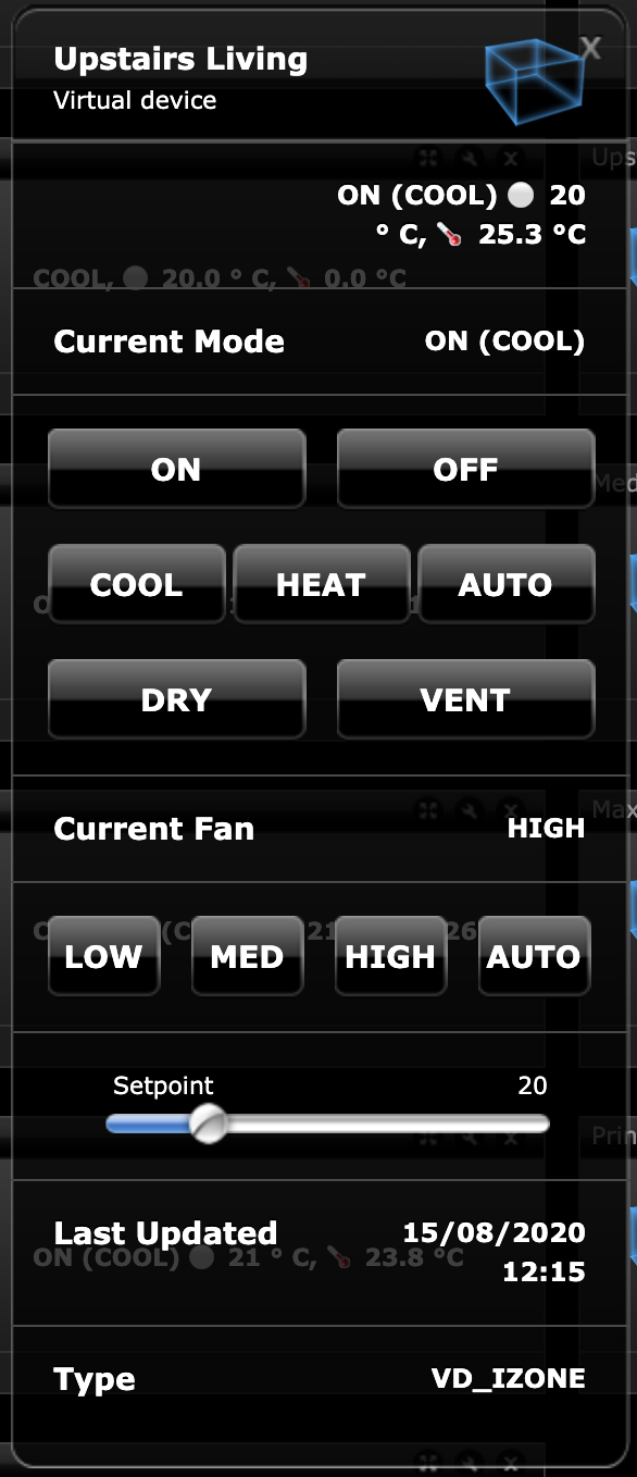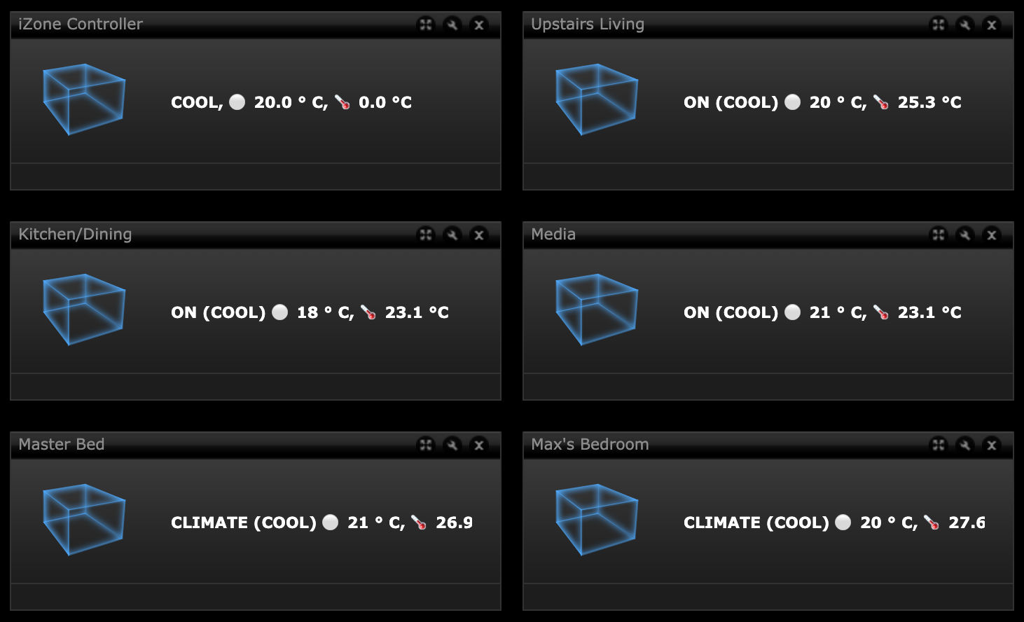 There will be a VD for the main iZone controller, and then one for each zone. As the iZone platform can only run in one mode (Heat/Cool/Auto etc) any changes to a zone's mode will action this mode change on the master unit, and subsequently all zones.