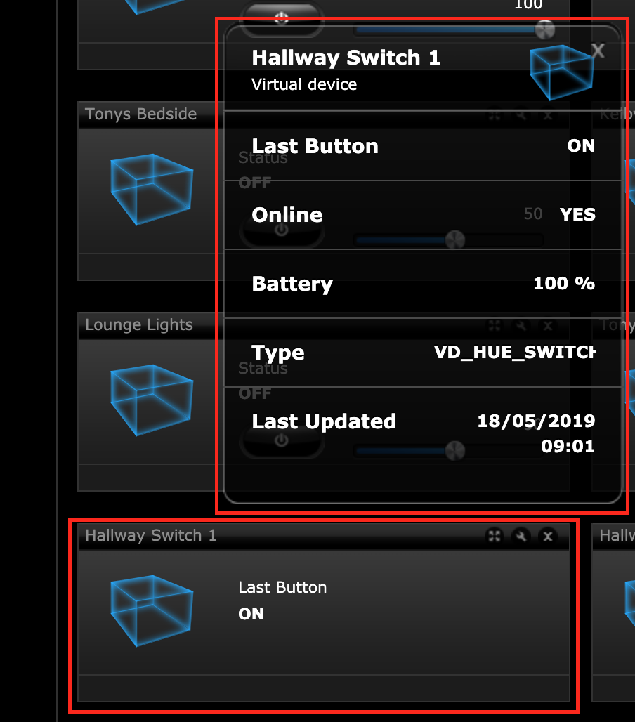 #1 A VD will be created, for each switch, this will allow you to see the status of the switch device, its battery level and the last button that was pressed.