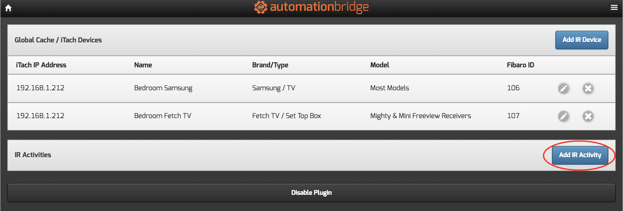 Once you have added your IR devices, click the button 'Add IR Activity' button from the Settings page of the plugin.