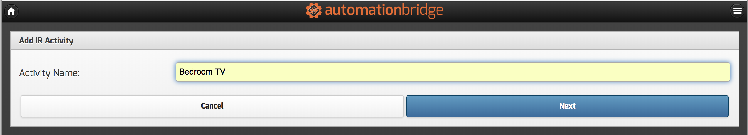 Enter the name for this Activity, this name will be used for the name of the Device in Fibaro.