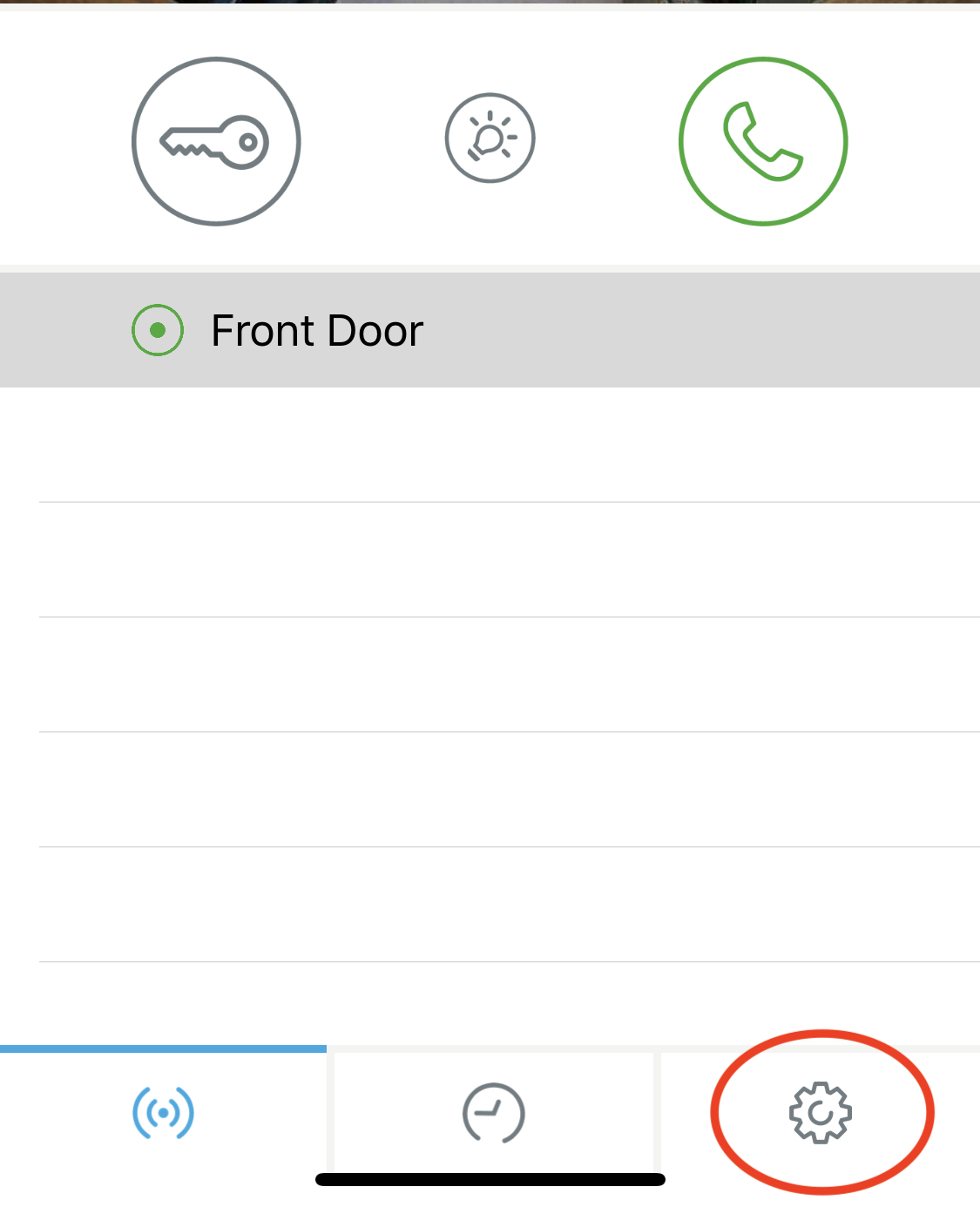 Step 1 - Open the Doorbird app, and click the Settings icon, bottom right.