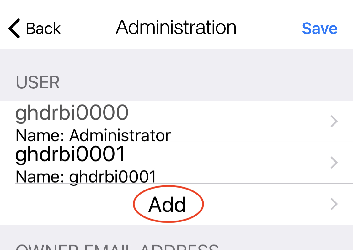 Step 3 - Under the User section at the top of this screen, click the Add link.