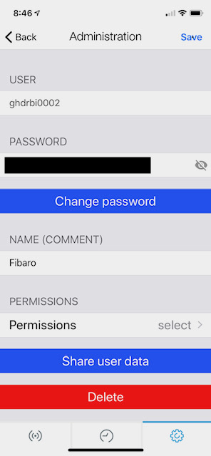 Step 5 - Enter Fibaro into the Name (comment) field and then click the Permissions link.