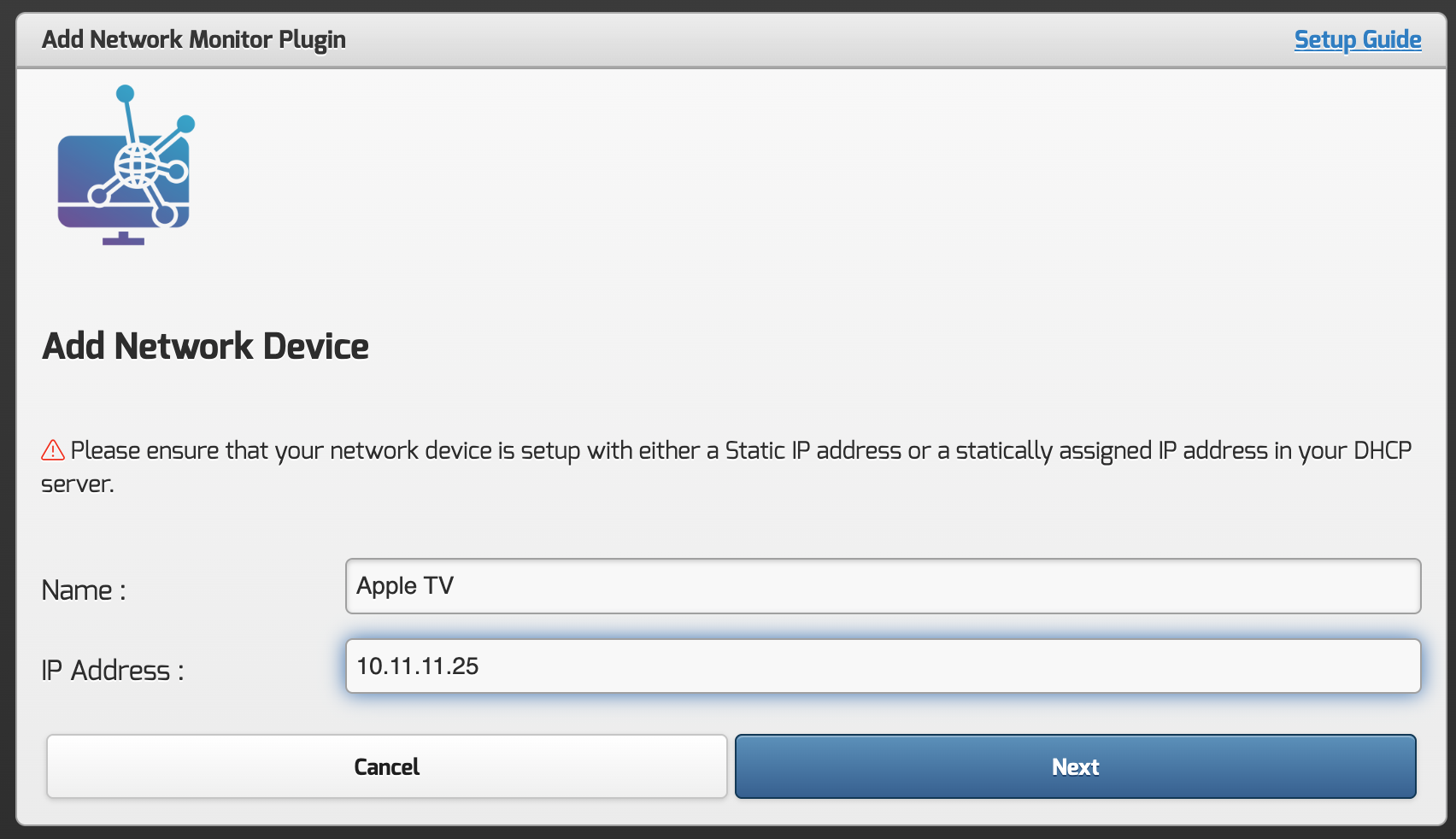 Step 2 - Enter a name for the device, and its IP address (example below)