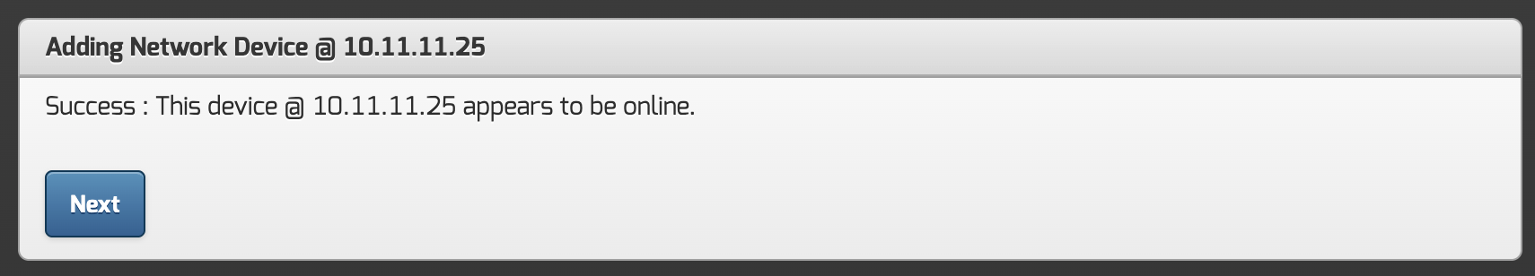 Step 3 - This device will then be checked, and if online, show a success message like so, click Next to proceed