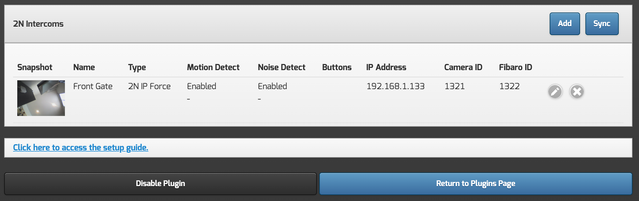 Step 4 - Click the OK button to proceed, you will be taken to the Settings page for the 2N Plugin. From here you can add/remove additional intercoms as required.