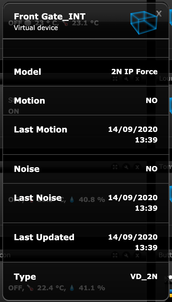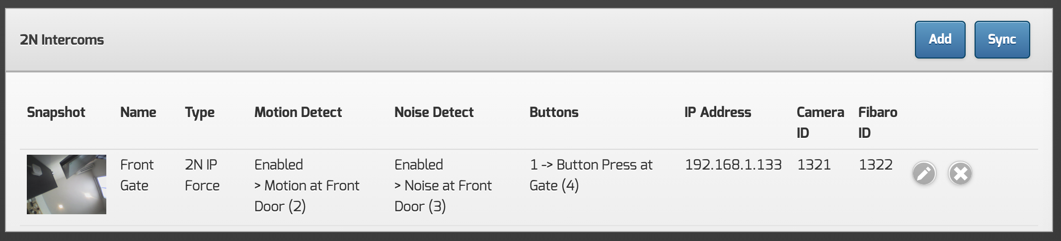 From here you can edit each Intercom, and specify the actions (scenes) that you want to run for each action event (motion, noise and button press). Just click the edit icon to the right, and update as required. (for example)