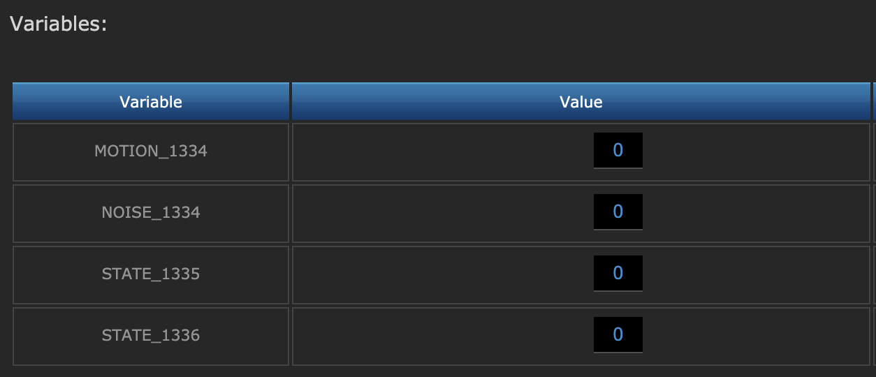 You will also find some global variables have been created, which can be used in scenes/logic, where 1 = MOTION/ON, 0 = NO MOTION/OFF
