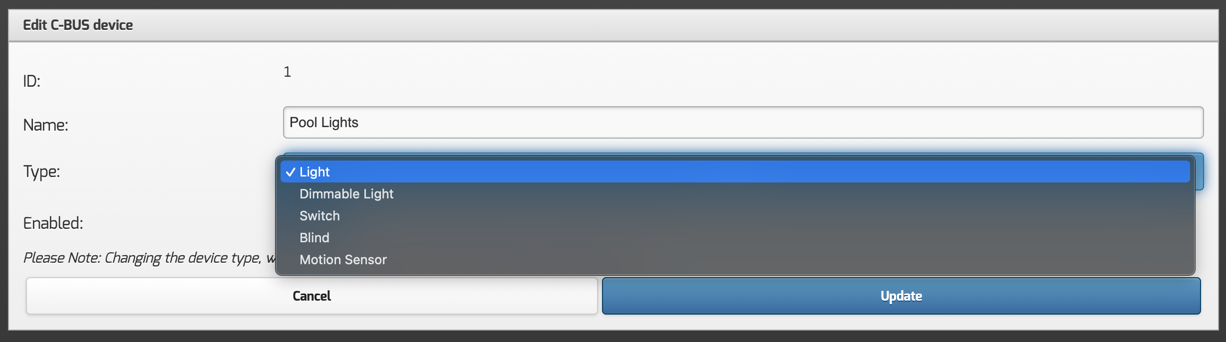 Please Note: You will need to enable the devices you want to bring across from the C-BUS controller by flipping the toggle on the right.