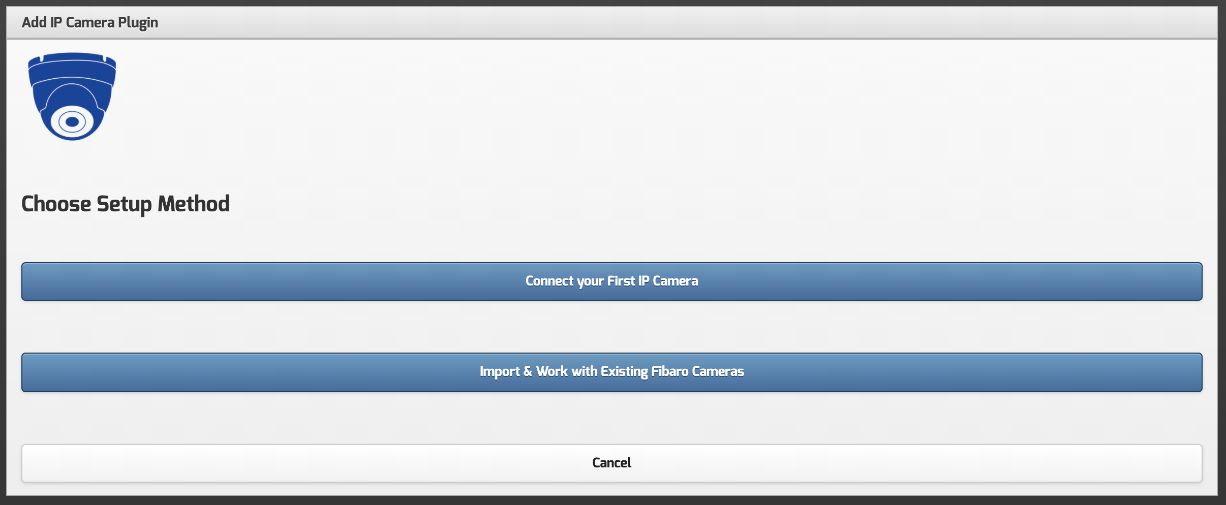 You will then be asked if you want to add a new IP camera, or to work with the existing IP cameras that you may have setup in your Fibaro already (Fibaro HC3 only). Further cameras can still be added later on.