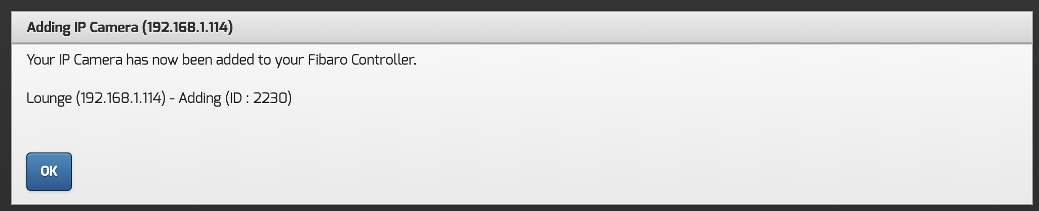 Step 5 - The camera will then be added to your Fibaro controller, and confirmed.