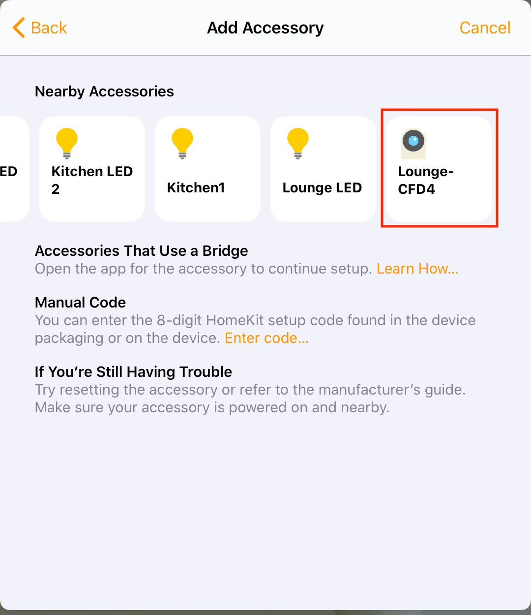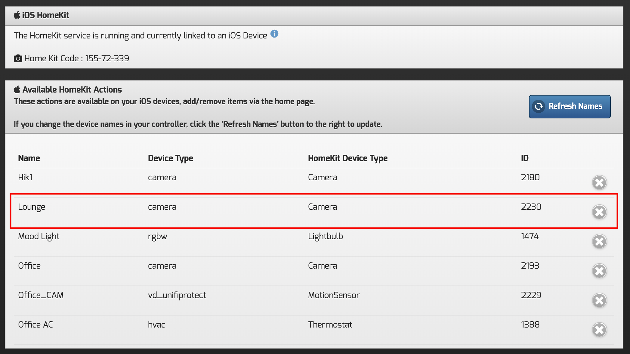 This completes the setup and use of the IP Camera plugin. If you want to add more cameras in the future, just navigate to the Settings page, Click the Add button, complete the above processes, enable the camera from the home page of the bridge, restart HomeKit and then add as above.