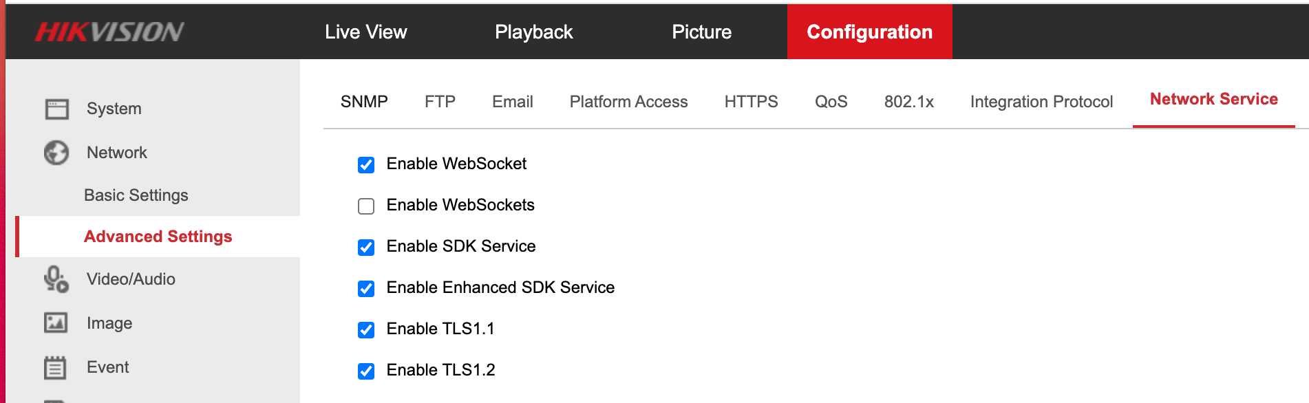 Hikvision-CGI (or Open Network Video Interface) must be enabled.