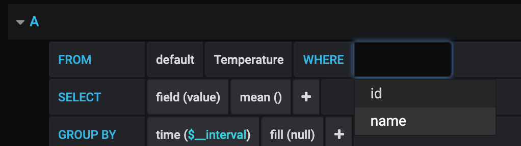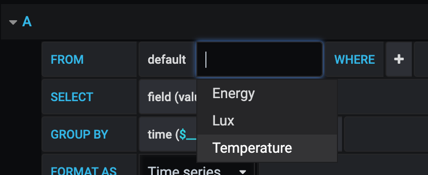 Next we select the device we wish to visualise under the 'select tag value' field