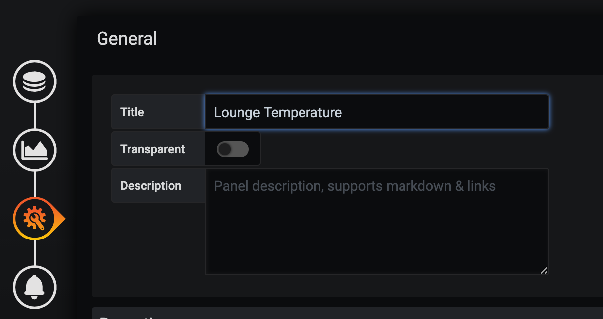 Now proceed thru the options on the left hand menu, where you can customise how the data is shown, making sure to give the panel a title.