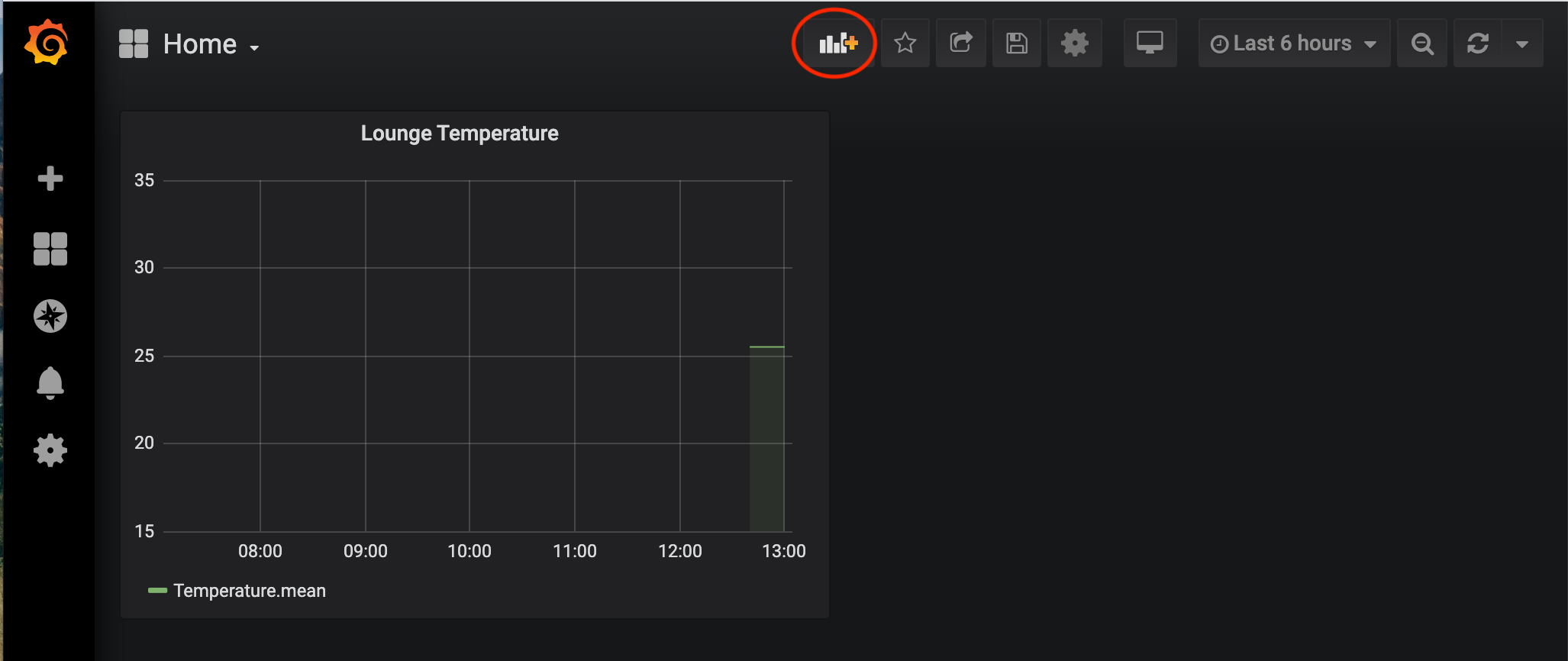 Once the dashboard is saved, you will be taken to it, from here you can add more panels to display your data, by clicking the Add Panel icon.