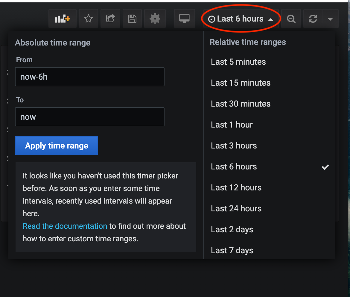 We recommend that you refer to the Grafana documentation for further information on how to configure your dashboards & panels, this can be found at the bottom left of the page.