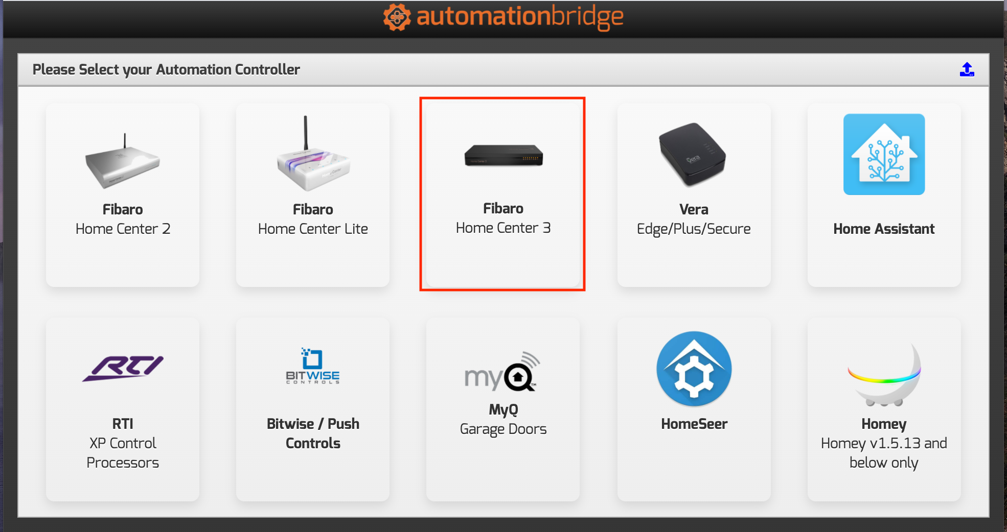 Confirm this reset process and allow the automationbridge to reboot, then at the selection screen, choose the HC3 icon, and then proceed to setup the bridge.