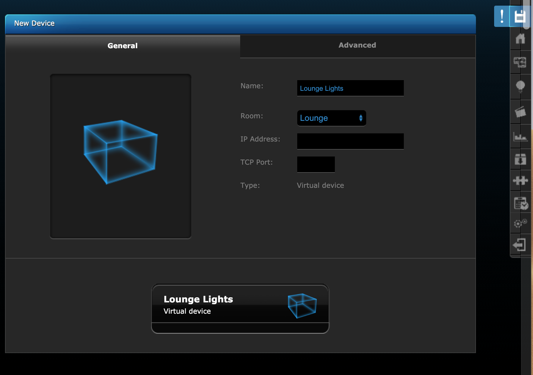 This allows you to create a Virtual Device, that could be used to group many lights together, into one object that can then be added as a Dimmable Light for Alexa/Google & HomeKit. In the example below I will create a master light object for my Lounge Lights, these are actually 7 individual Philips Hue globes.