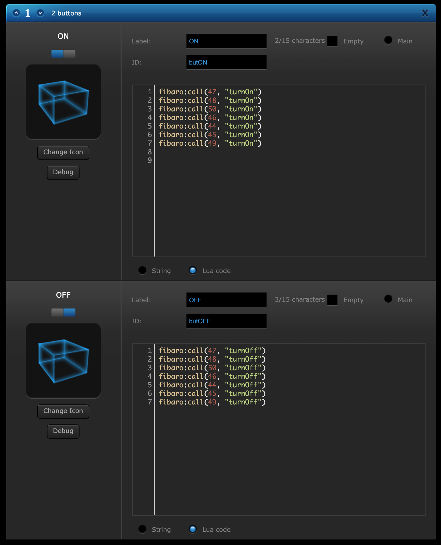 Step 3 - Add in the LUA code to turn ON and OFF the required devices, note that the Label must be ON & OFF