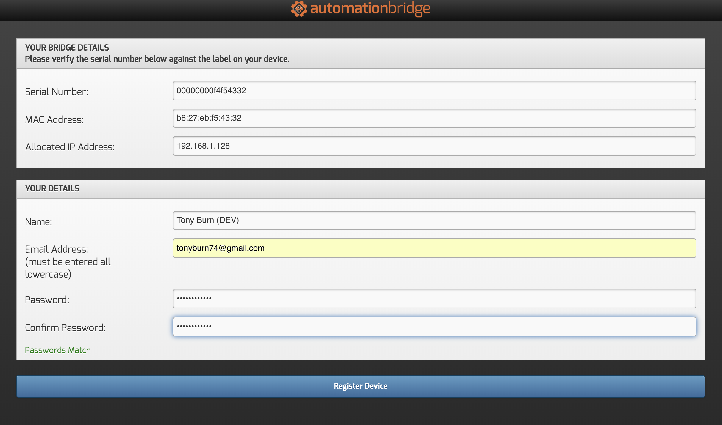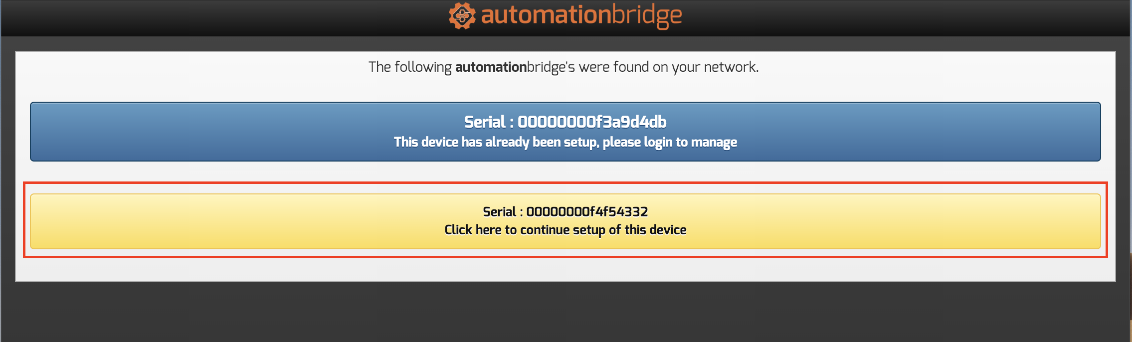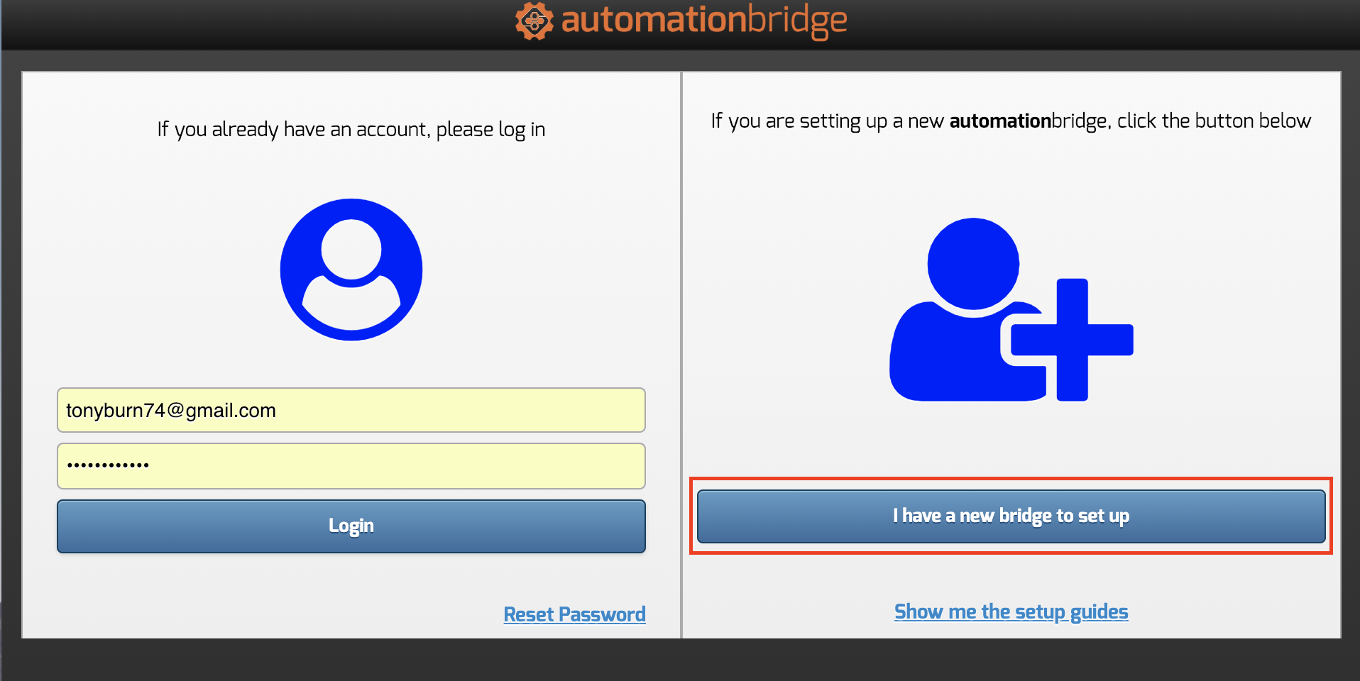 You can now setup multiple bridges to use the same email account. Please follow the below steps when setting up your subsequent automationbridge device.
