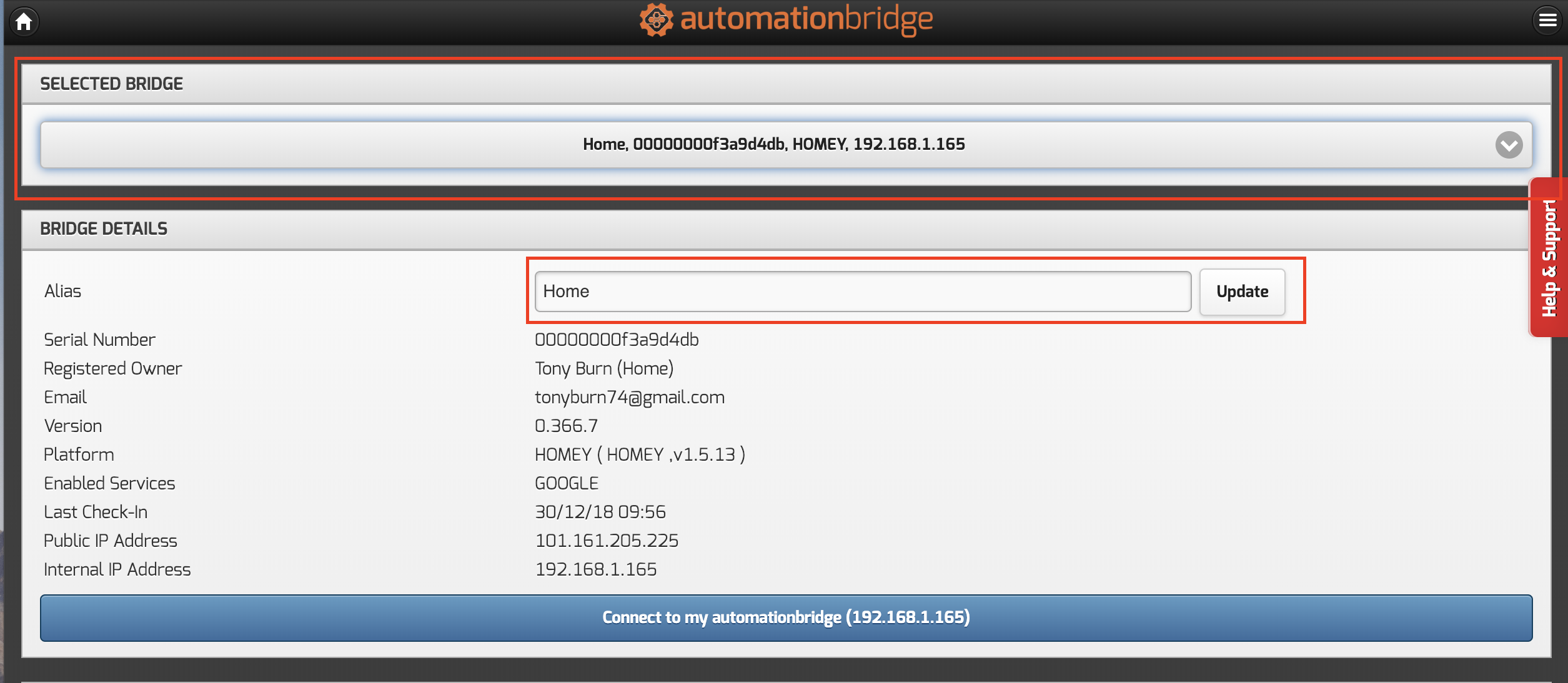 You can also assign a Alias (Name) to each of your bridges, this will be shown each time you are required to select a bridge, for example when linking to Google / Alexa.