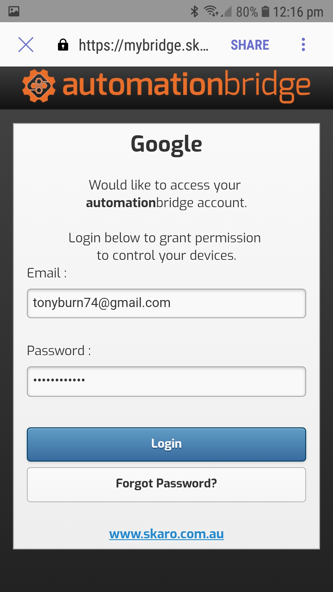 Now when you link your automationbridge to either Google or Alexa, you will be presented with a screen to select the bridge you want to connect, Login as usual with your username and password for your account.