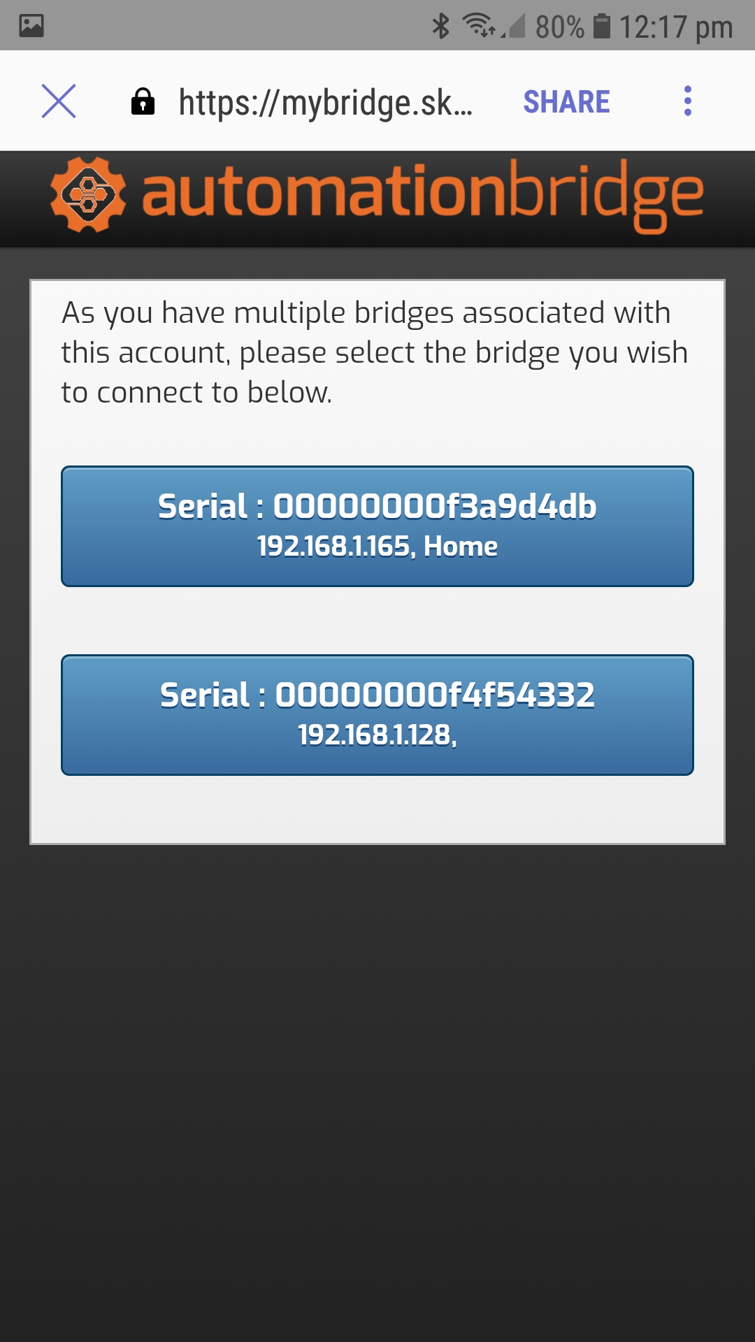 You will now be asked to select the desired bridge to be connected to, this will then only setup the devices from the selected bridge.