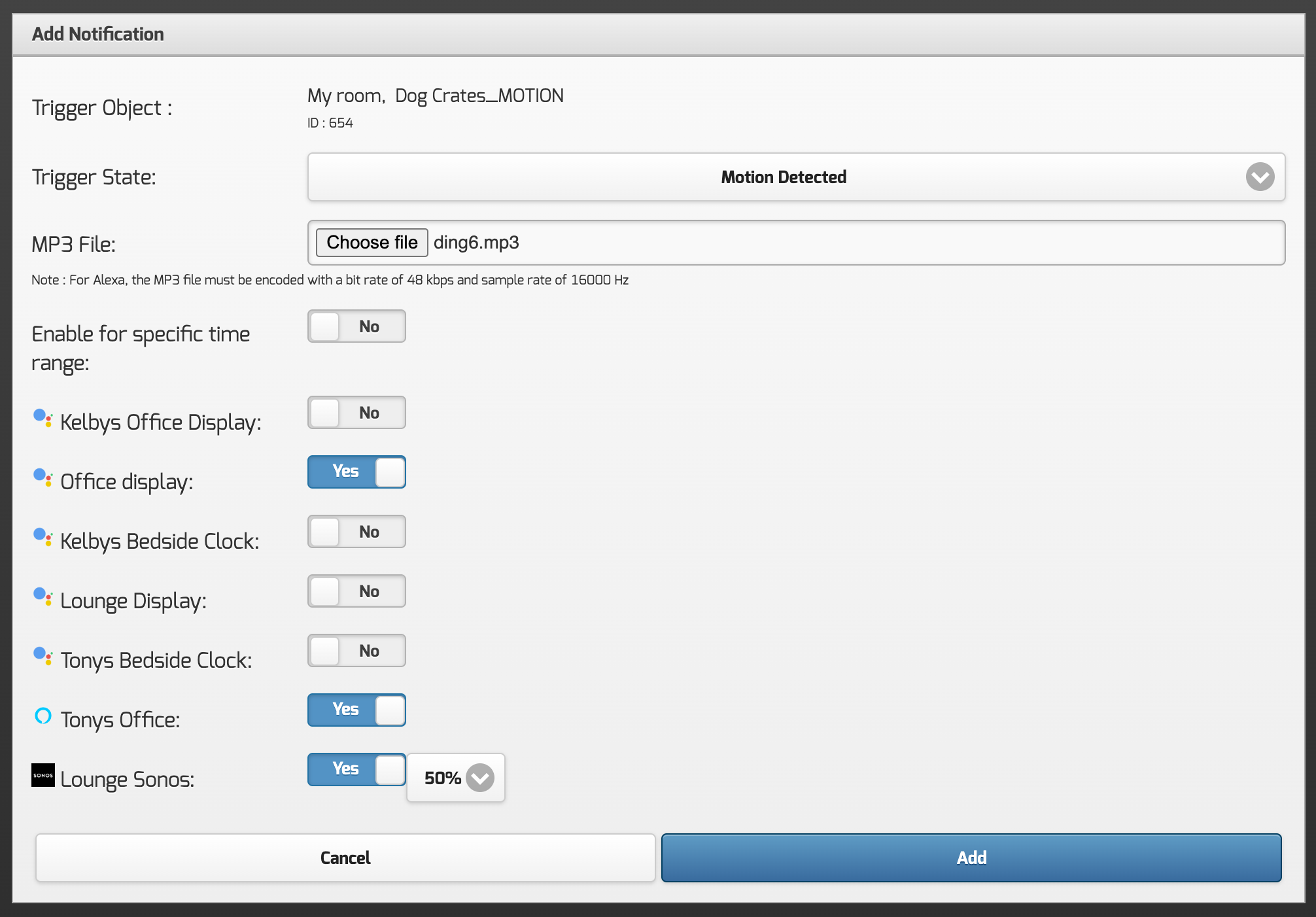 As from v2024.1 of the automationbridge, you can now play a MP3 file to your Alexa, Google & Sonos speakers in addition to the existing Text-To-Speech announcements.