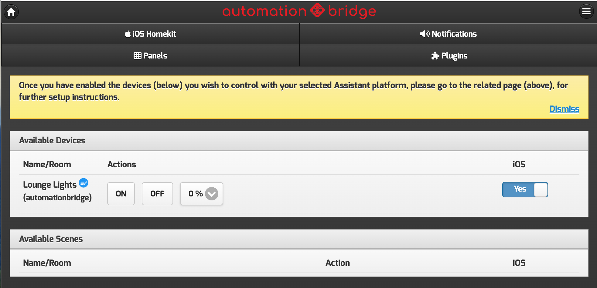 Now you can return to the Home Page, and enable for your required Voice platform, eg iOS HomeKit.
