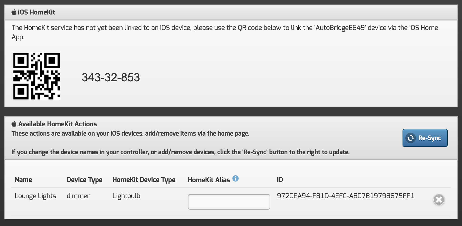 Next, head to the iOS HomeKit page, here you will be presented with the QR code to add to the iOS Home App.