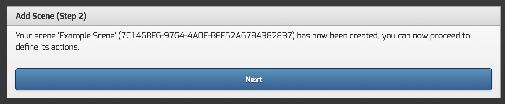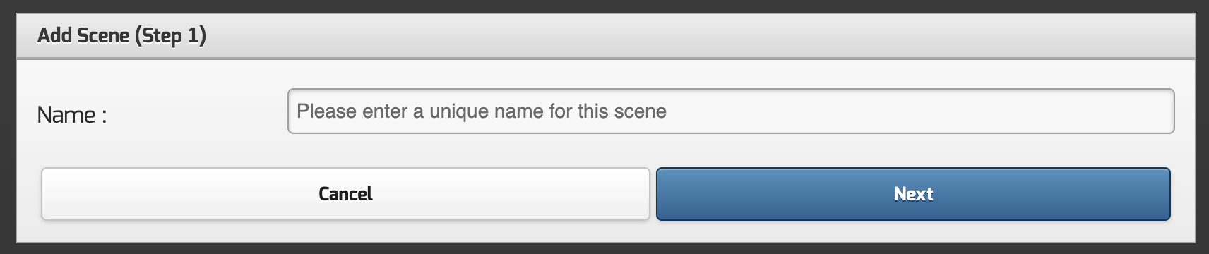 Clicking this will then ask for a name for the scene, give it a name and click Next