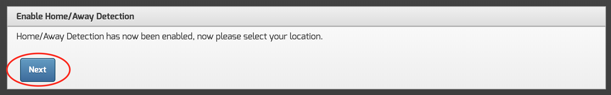 Step 2 - Once enabled, this will be confirmed, click Next to select your location.
