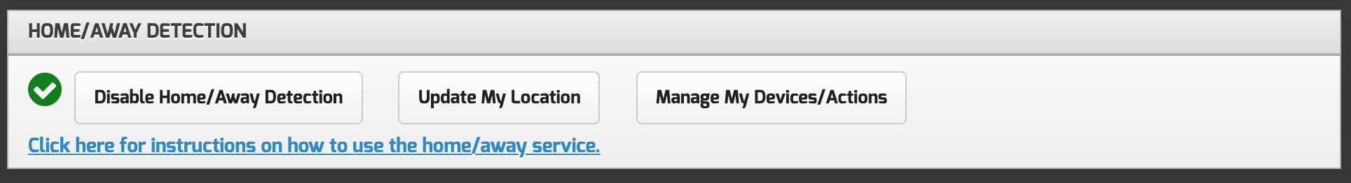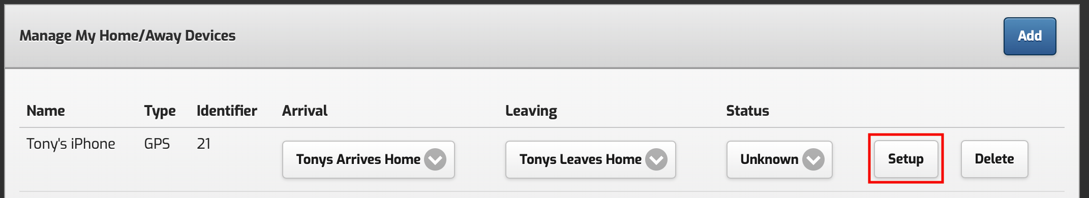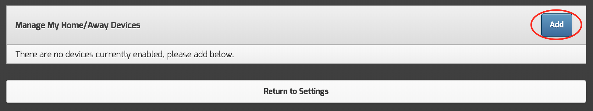 Step 4 - You will returned to the Settings page, from here you can update your location/radius if you need to change/adjust it. For now we will click the button to Manage My Devices/Actions, here is where you setup each phone/device you wish to use.
