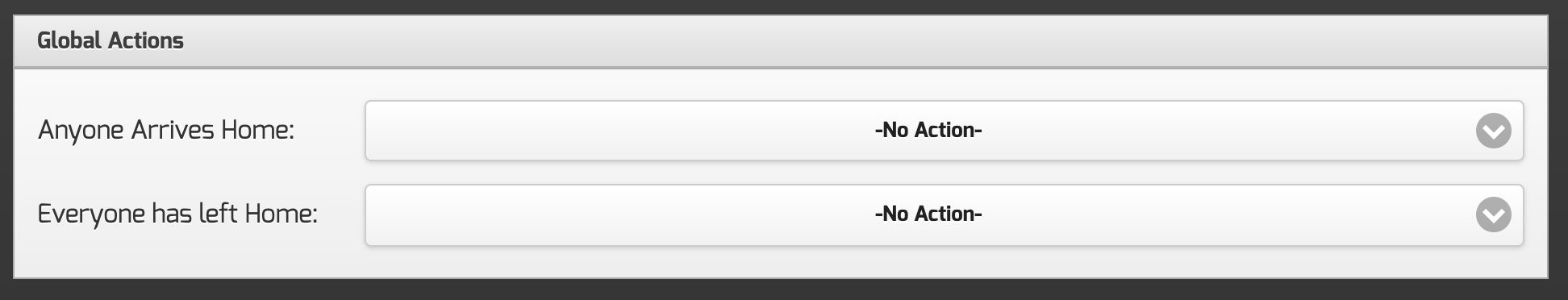 Also on the Manage page, you can select the scenes you wish to run when anyone arrives, and also when everyone has left the Home area, just pick from the list, they will be automatically updated and saved.