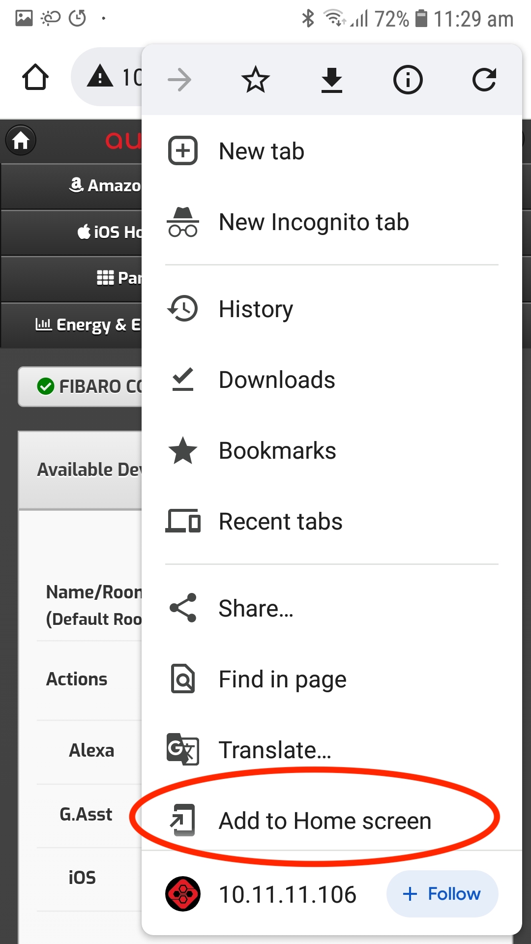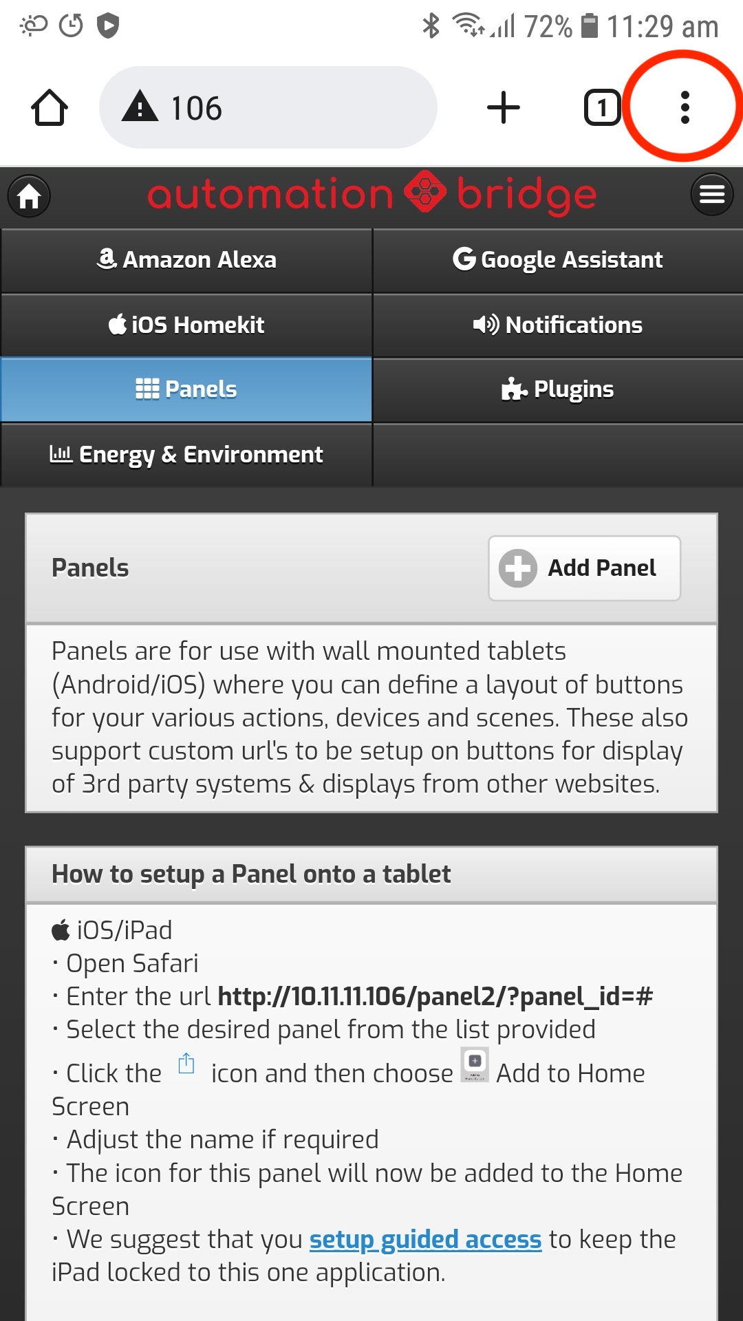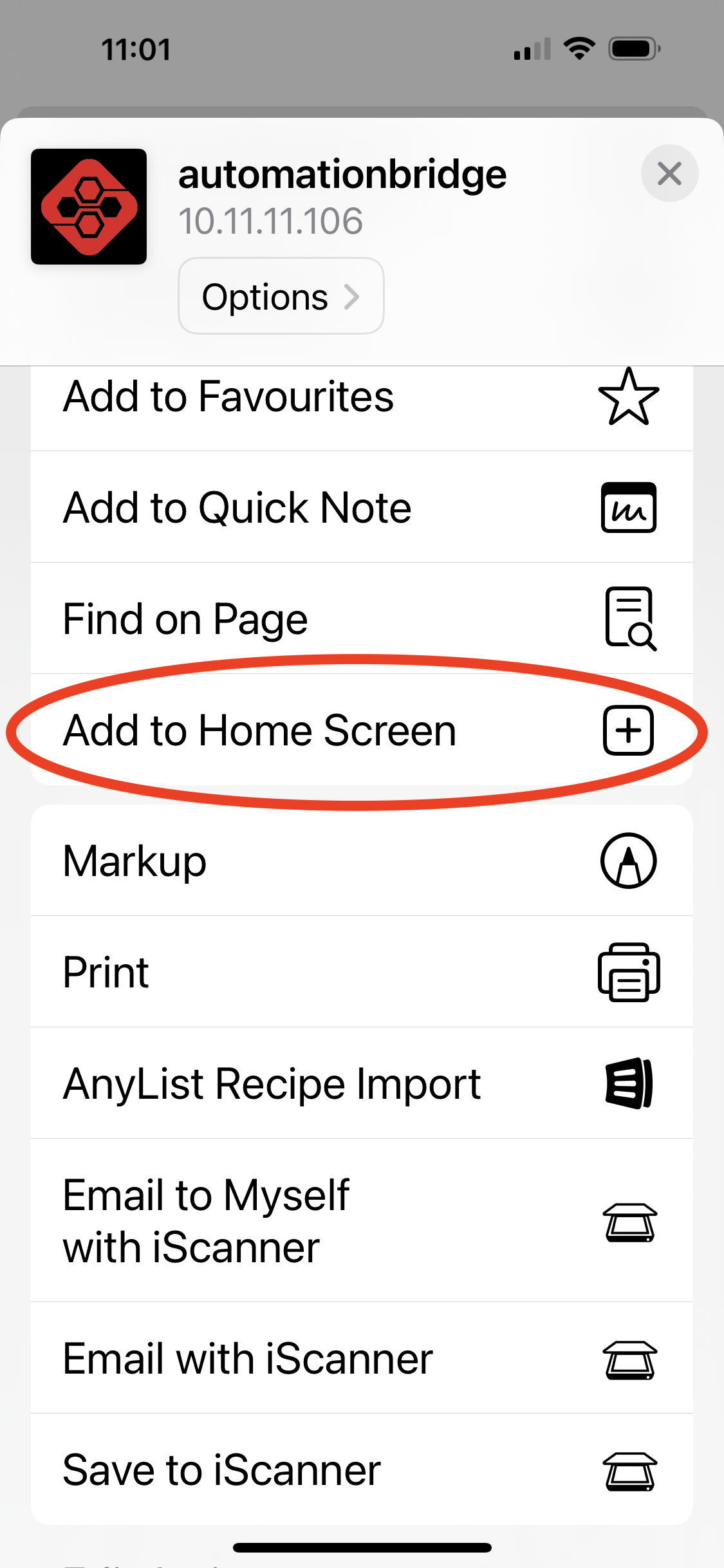 Step 1 - Open the automationbridge interface on your device with Safari, and log in.