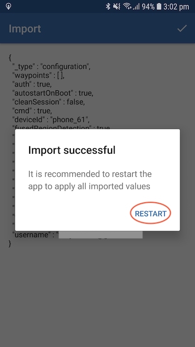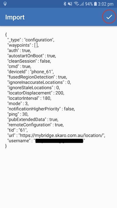 Step 2 - Open the application for the first time, and go thru the initial wizard, allowing the app to get the correct permissions, this will also register the app on your phone and allow you to import the configuration (below).