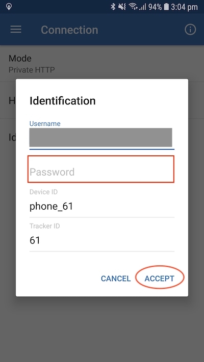 This can also be verified by going to the menu of the Owntracks app, selecting the Status link, if this shows 'HTTP code 401' this means that the password is incorrect. A valid connection will return 'Response 200, 1'.