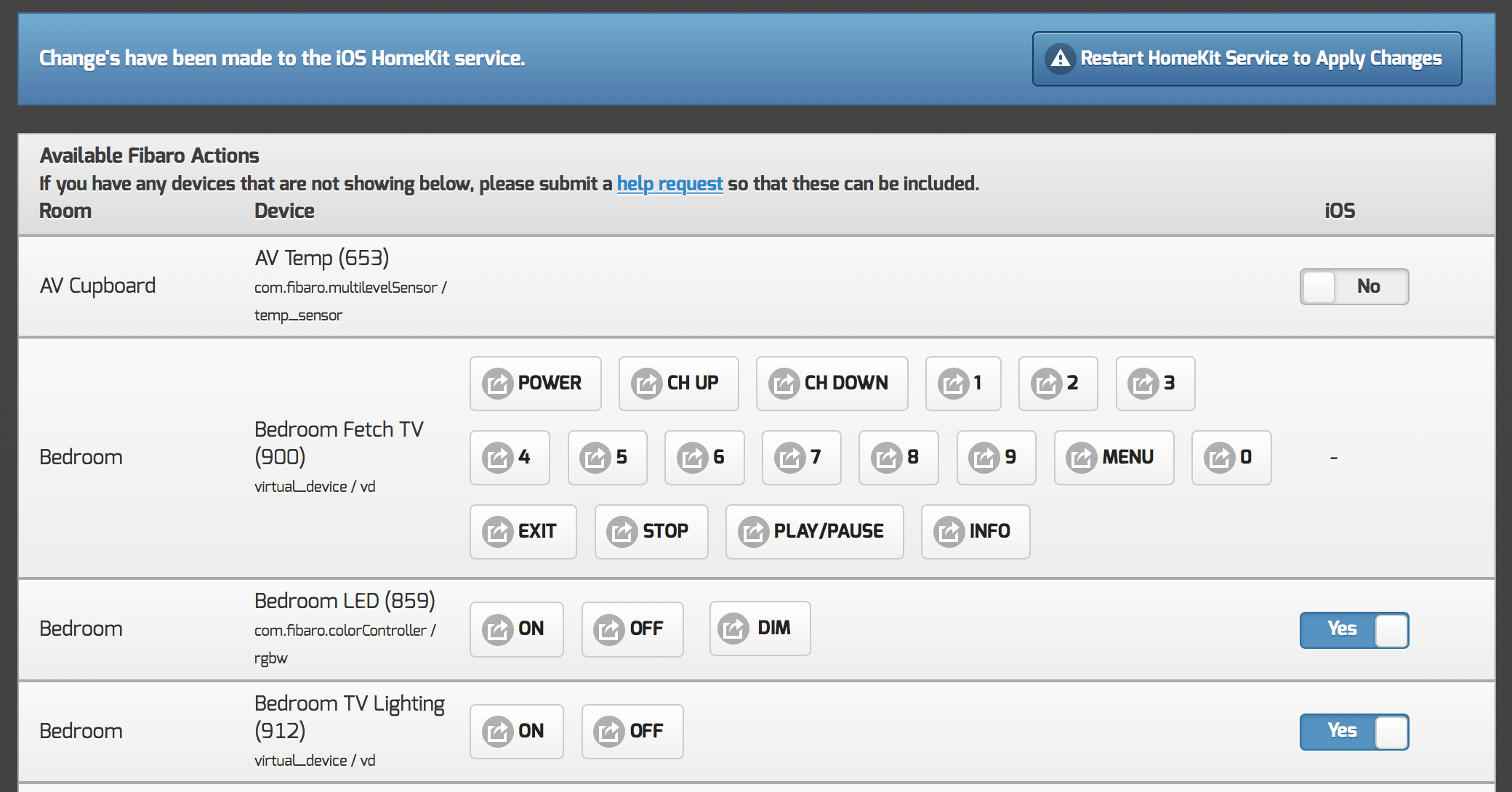 Refresh Names – forces the bridge to update its names, should these be changed in Fibaro (note this does happen automatically every 10 minutes).