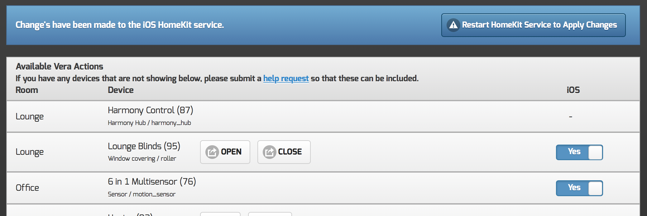 Once this is complete, you will find your enabled Vera devices on the Home app, and these can now be controlled by the App & Siri.