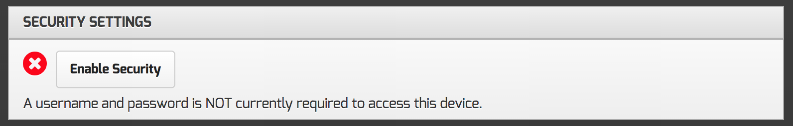 A red cross indicates that security is not currently enabled, click Enable Security to proceed.