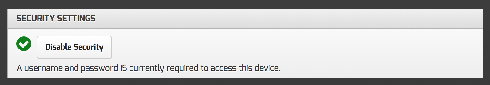 To disable the security (if required), just return to the settings page, you will see that the icon is now green to indicate that its enabled, just click the Disable Security button.